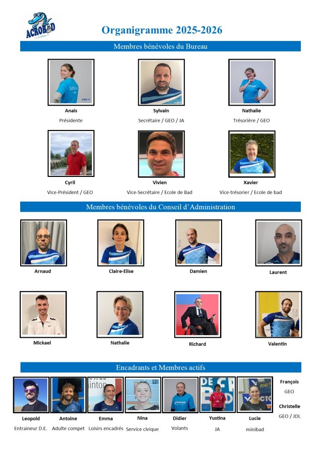A signaler que le nom ACROBAD n'a rien avoir avec celui porté par un club parisien et que nous avons l'antériorité du nom !